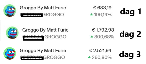 Zelf stap ik vaak in meme-coins onder de 2 miljoen marketcap en dan kan het echt alle kanten op. Of het gaat naar 0 euro of je hebt een x7 in een paar dagen tijd.
