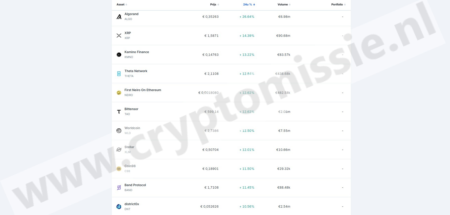 Aangeboden cryptocurrencies