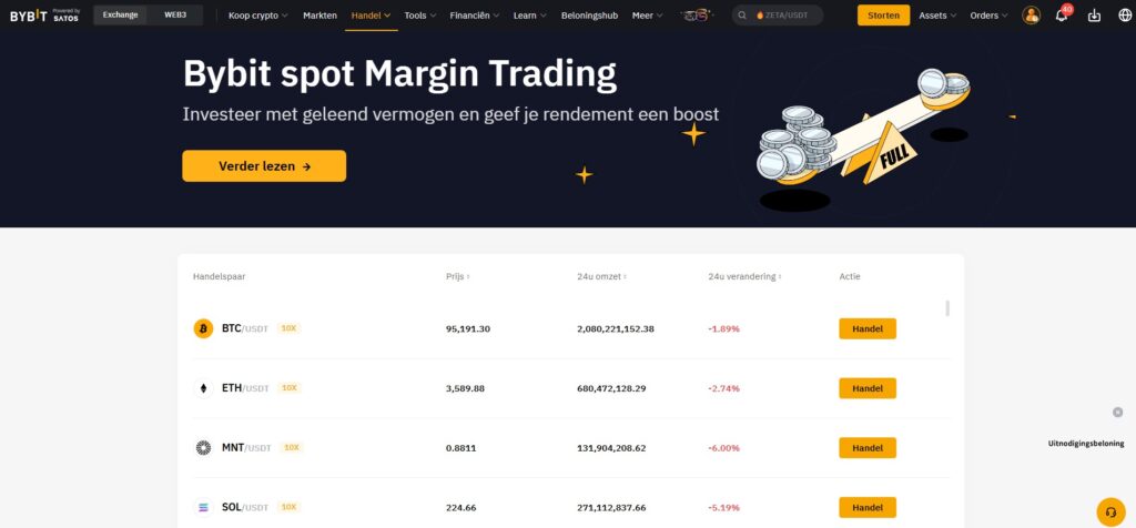 Ervaren handelaren vinden bij Bybit veel opties. Je kunt hier margin trading doen met tot 10x hefboom. Dat is handig als je meer risico wilt nemen. Bybit heeft ook veel geavanceerde handelstools. Die helpen je om slimmer te traden.