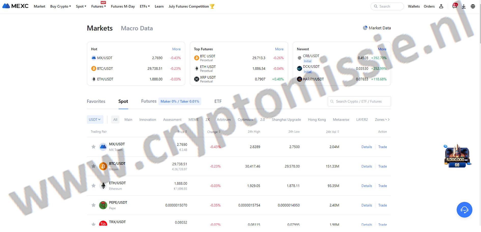 Een ander kenmerk van deze Mexc exchange is het gebruiksvriendelijke platform. Het biedt een intuïtieve interface die gemakkelijk te navigeren is, zelfs voor beginners in cryptohandel. Dit maakt het handelen eenvoudig en toegankelijk voor gebruikers van alle niveaus.